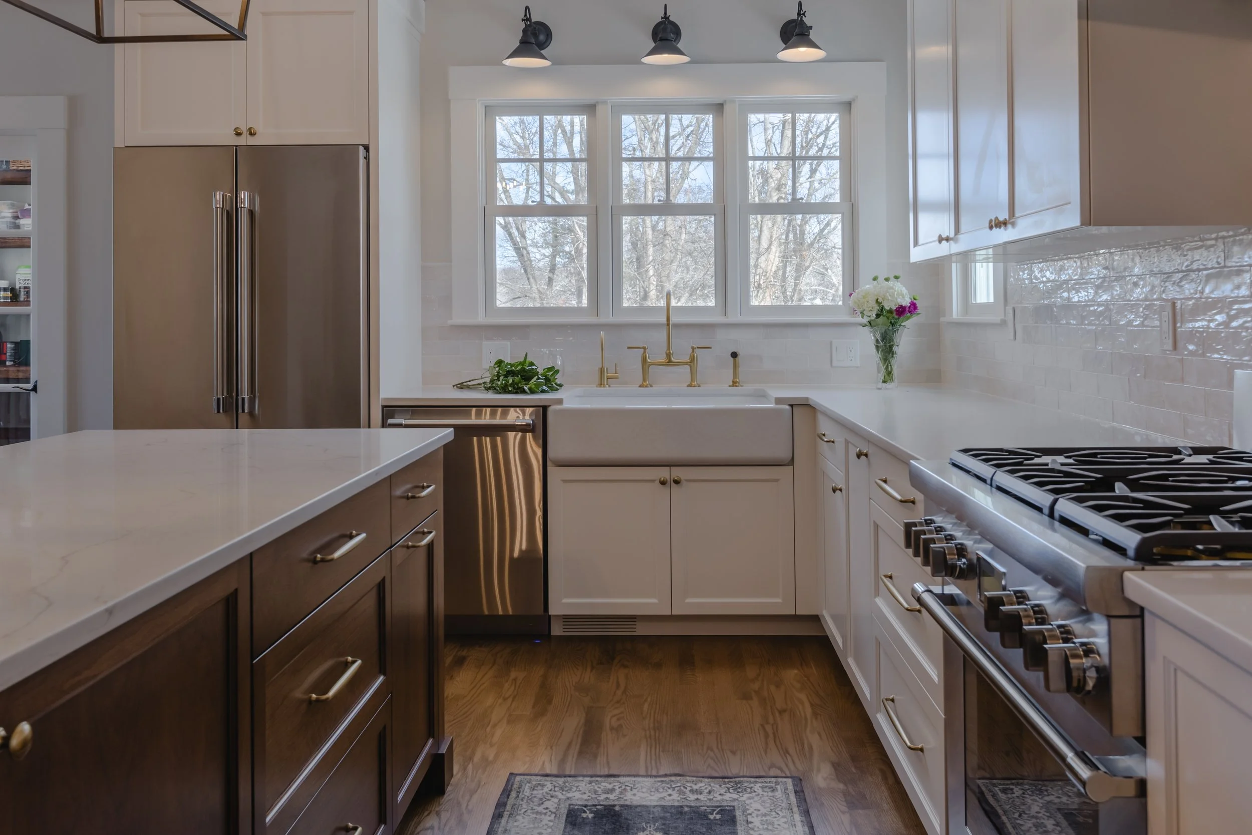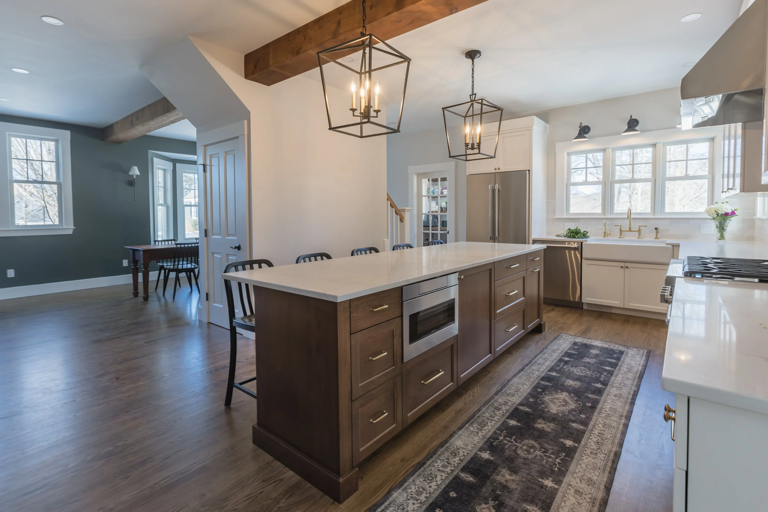 As part of a multi-phase, whole-home renovation, we partnered with the homeowners to prioritize the most impactful updates. In the first phase, we transformed the front entryway, kitchen, pantry, dining room, upstairs bathroom, and added a beautiful new deck.