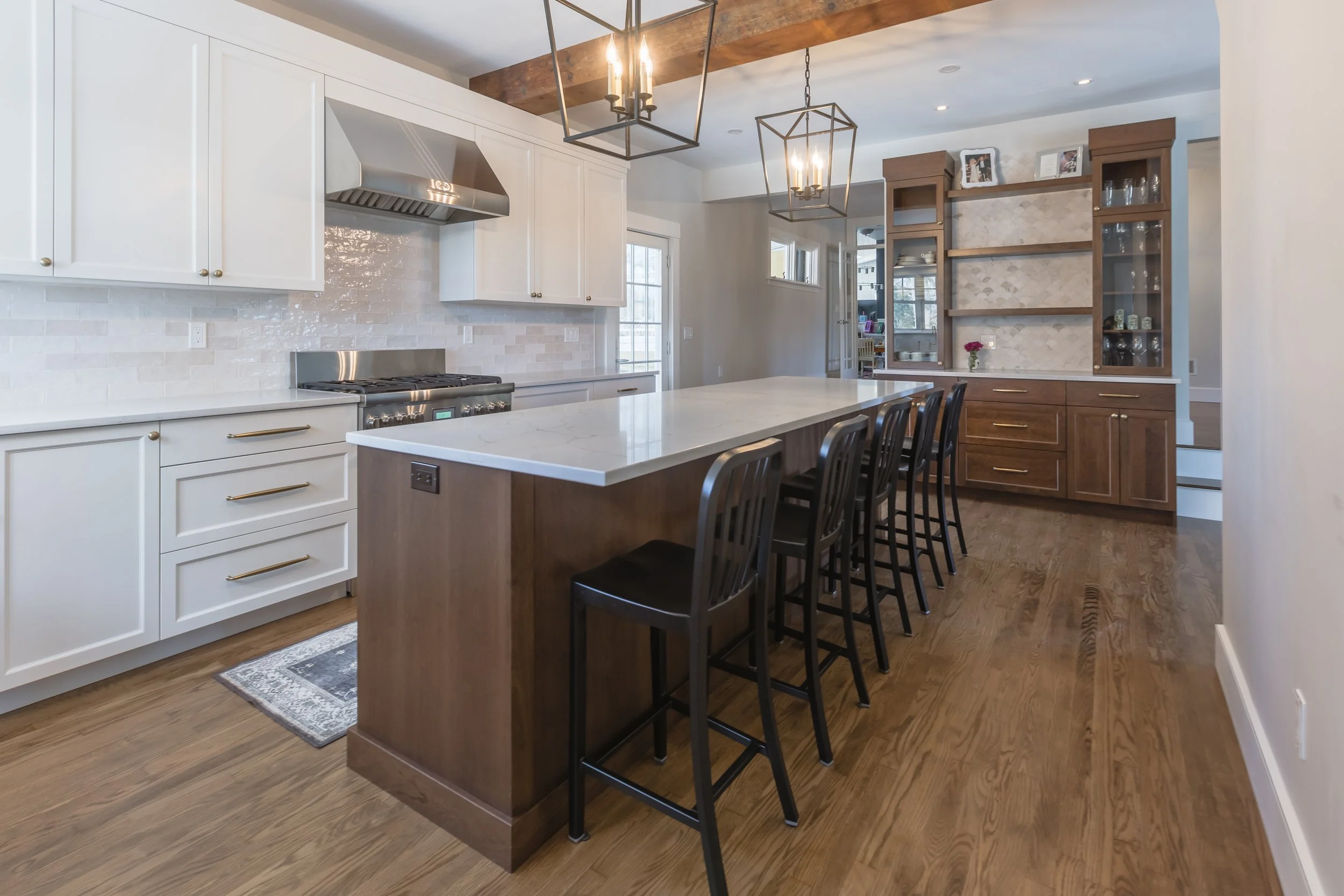 Some of our favorite design elements include the oversized kitchen island, custom beverage station, walk-in pantry, and the inviting warmth of the cabinetry and wall tones. Every detail came together seamlessly, honoring the home's history while elevating its function and style.