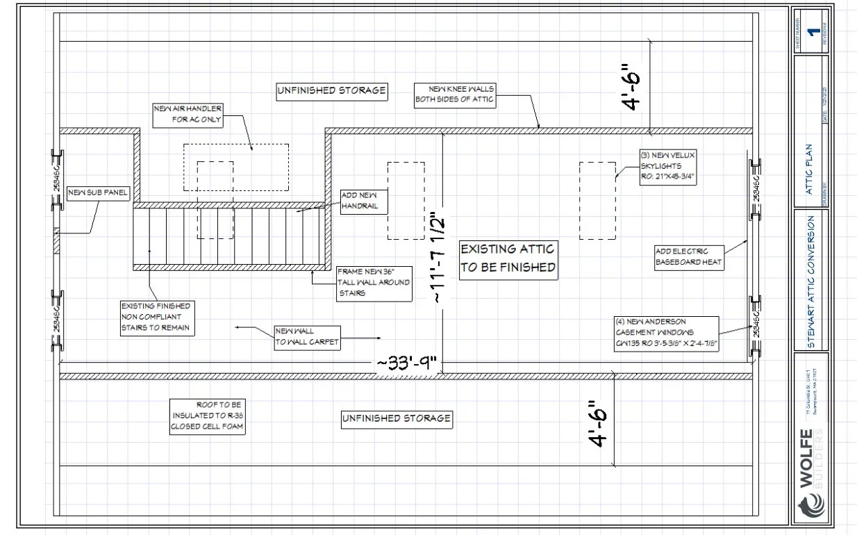SCOPE: Wolfe Design Build converted an existing, unfinished attic space into a finished and functional room.